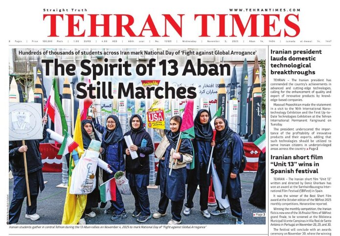 TEHRAN, Nov. 05 (MNA) – Here are the front pages of Iran’s English language dailies on Wednesday, November 5.