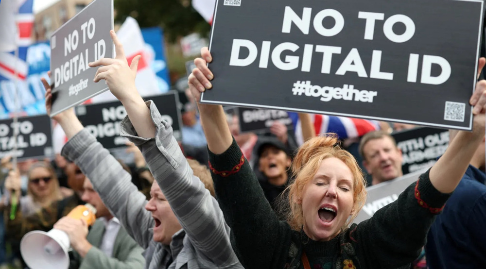 Protesters have braved the cold weather to march against the planned introduction of digital IDs for British citizens.