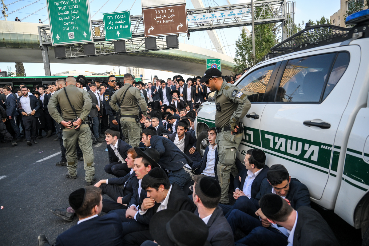 Ten Israeli police officers were injured Thursday in violent clashes with hundreds of ultra-Orthodox (Haredim) Jewish protesters in west Jerusalem, police said, Anadolu reports.