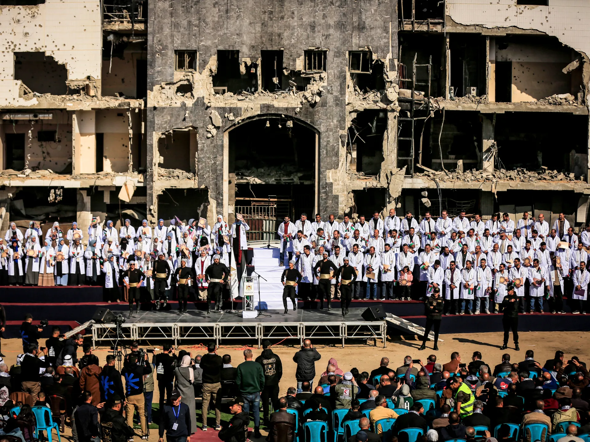A cohort of 168 Palestinian doctors have received their advanced medical certifications in Gaza amid the rubble of what was once the Palestinian territory’s largest hospital.