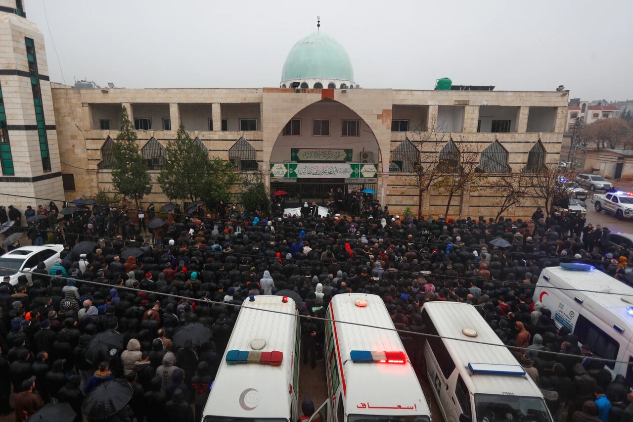 Hundreds gathered in the rain and cold outside Imam Ali ibn Abi Talib Mosque in the Syrian city of Homs on Saturday to mourn the eight people killed in a bombing the day before in the predominantly Alawite Wadi al-Dhahab neighborhood.